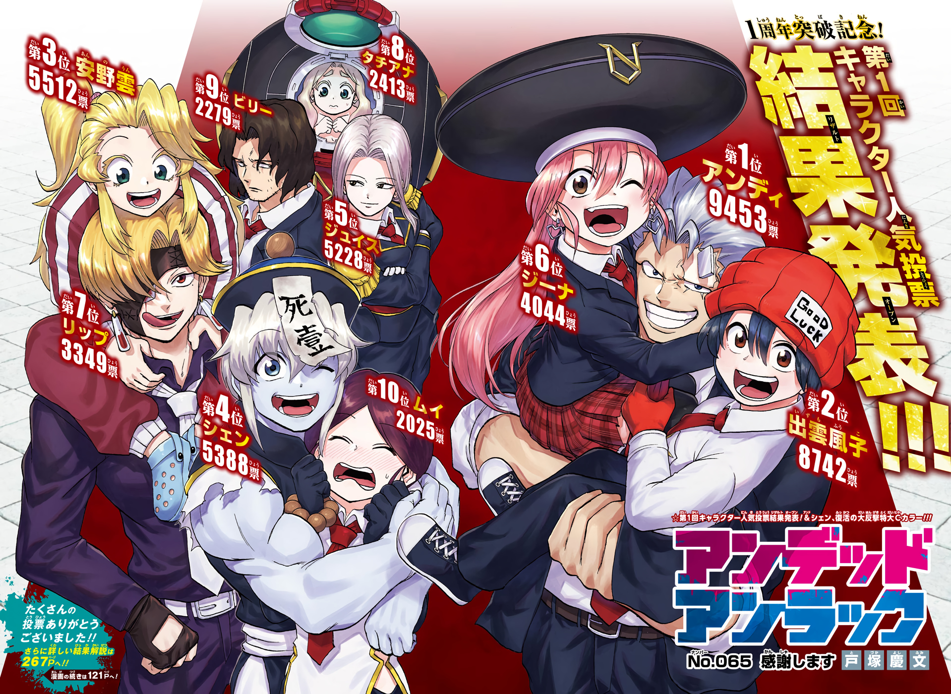 The first popularity poll took place between February 22 and March 22, 2021, allowing users to vote once a day for their favorite character. Results were announced in the 26th 2021 Issue of Weekly Shonen Jump.
