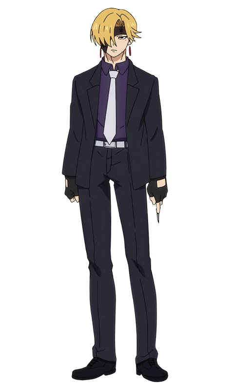 Rip has mid-length blond hair and wears an eye-patch-like mask that covers most of the right side of his face. He wears a dark purple suit with a white tie, brown finger-less gloves, and a white t-shirt underneath. Blood is often seen trailing out from his eyepatch from an accidental self-inflicted wound that stays open due to Unrepair. He has a small pair of blood bag earrings which hang off of each ear. Rip has a beauty mark on the edge of his left eyelid and cheek. He's regarded as being a bit of a pretty-boy.[2]