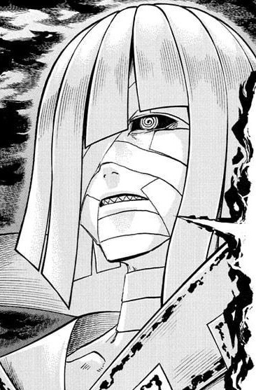 Seal appears to be a humanoid wrapped in scrolls. His eyes have spiral pupils with black sclera. His hair is composed of flat scroll paper that covers his right eye, cut in a style similar to a bobcut. His "clothes" are also made of paper, several with black stains and symbols. When using his ability, new scrolls appear on his chest bearing the name of the captured UMA or the Negator's negation.